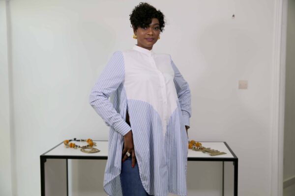 Chemise maxi en coton col mao – motifs rayures